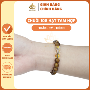 Sản phẩm này không chỉ dùng gỗ trầm hương mà kết hợp thêm với 3 hạt đá mã não đỏ có hình ảnh THÂN-TÝ-THÌN. Đeo vòng trầm hương tam hợp sẽ giúp những người tuổi Tỵ, Dậu, Sửu gặp nhiều may mắn, hoá giải hạn tam tai, bình an và giữ được tinh thần thoải mái. Nếu là vợ chồng hoặc cộng sự cùng kinh doanh, đeo vòng tay này sẽ giúp công việc và cuộc sống luôn hanh thông, thuận lợi.